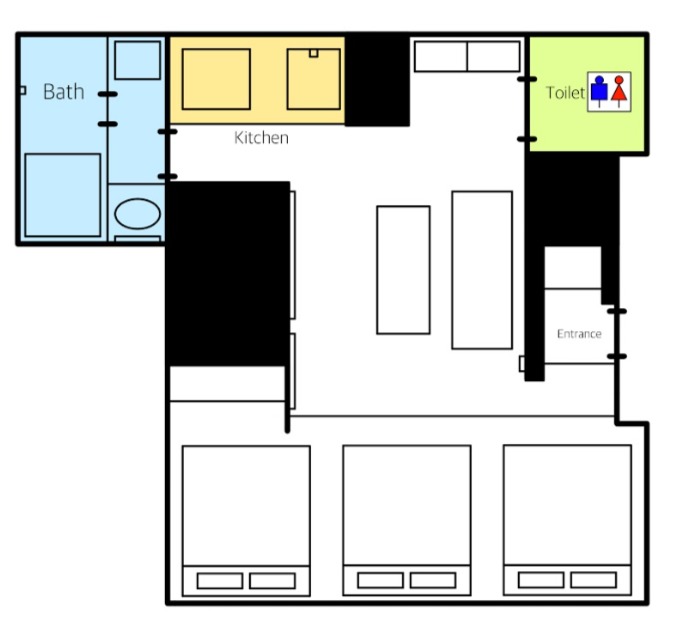 - ダブルベッド×2 シングルベッド×1