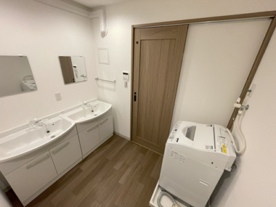 - キッチン(調理器具・食器類・ガスコンロ×2)/冷凍・冷蔵庫/電子レンジ/電子ケトル/トイレ×2/バスルーム×1(浴槽付き×1)/ドラム式 洗濯乾燥機
