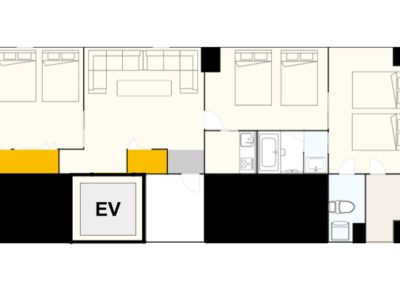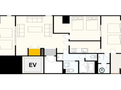 - キッチン(調理器具・食器類・ガスコンロ×3)/冷凍・冷蔵庫/電子レンジ/電子ケトル/トイレ×2/バスルーム×2(浴槽付き×1・シャワーのみ×1)/ドラム式 洗濯乾燥機