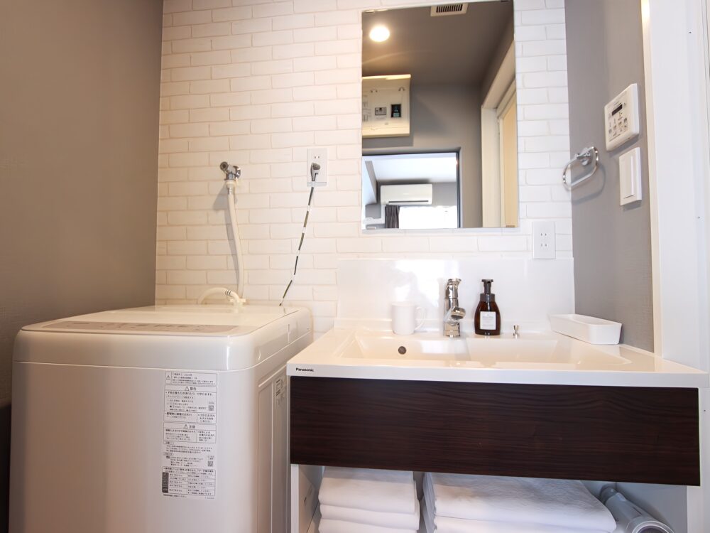 ・ご滞在中の無料清掃、リネン・タオル交換は行っておりません。タオルは客室内の洗濯機(またはお近くのコインランドリー)で洗っていただき、再利用いただきますようお願いいたします。